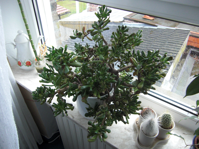Der Geldbaum ist ein Sukkulent, d.h. in seinen fleischigen Blättern und dicken Stengeln speichert er Wasser für Trockenzeiten.